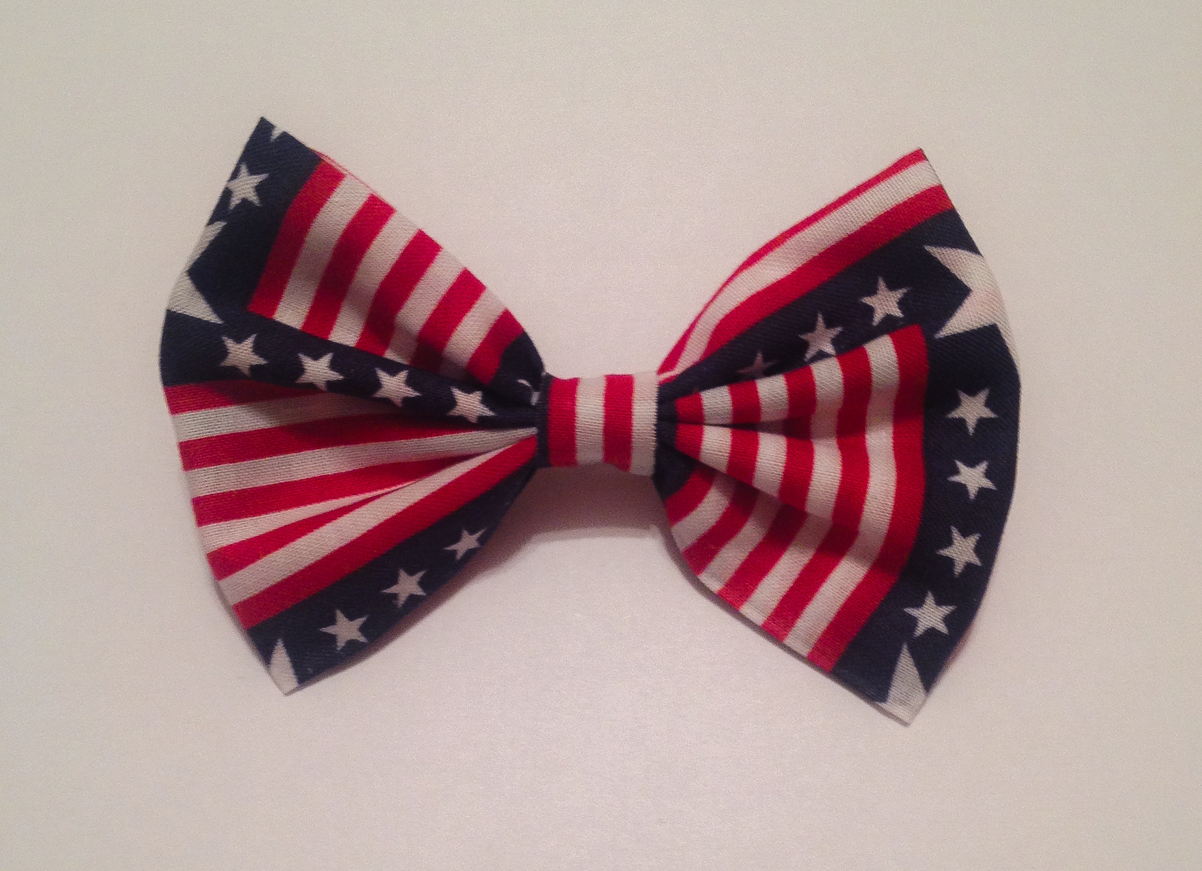 This bow is made from 100% cotton fabric. Comes with attached barrette. Bow is approximately 4 inches.