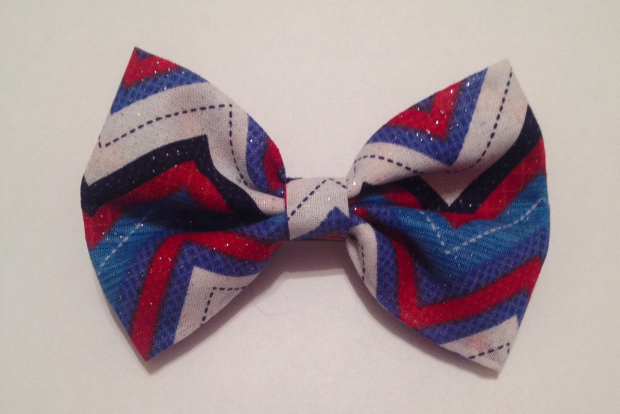 This bow is made from 100% cotton fabric. Comes with attached barrette. Bow is approximately 4 inches.
