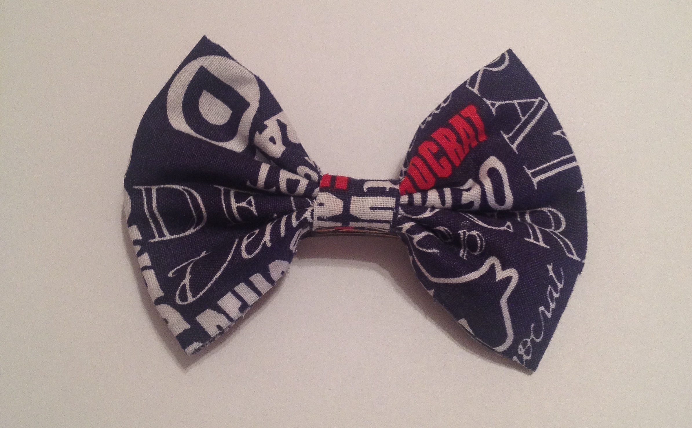 Bow is made from 100% cotton fabric. Comes with attached barrette. Bow is approximately 4 inches.