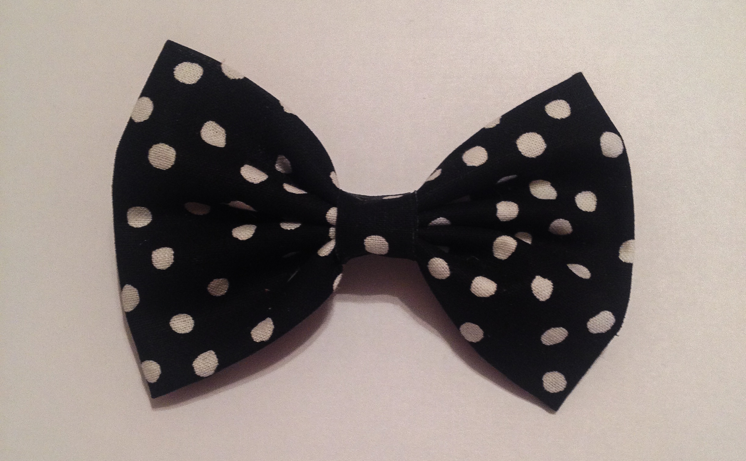 Bow is made from 100% cotton fabric. Comes with attached barrette. Bow is approximately 4 inches.