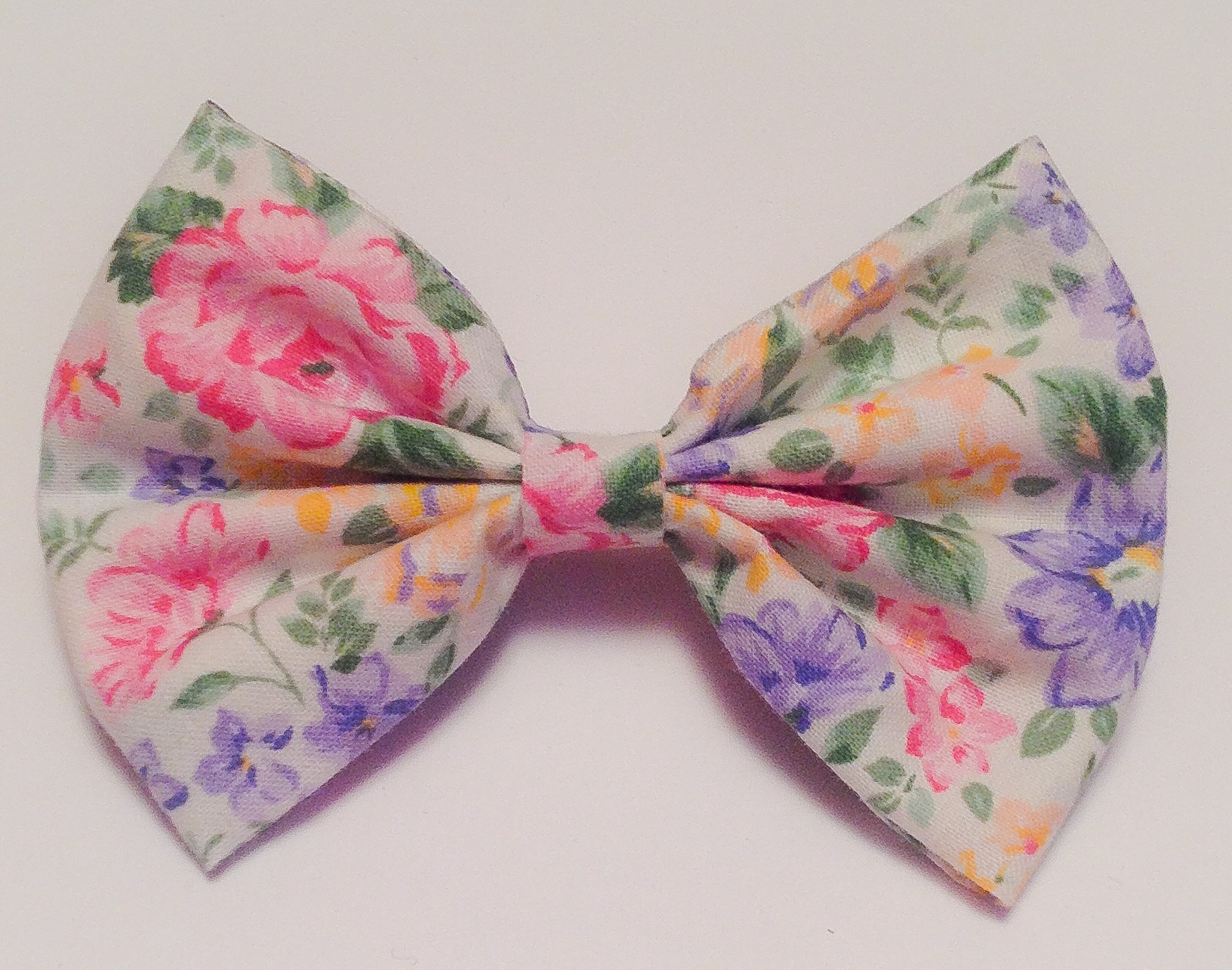Bow is made from 100% cotton fabric. Comes with attached barrette. Bow is approximately 4 inches.